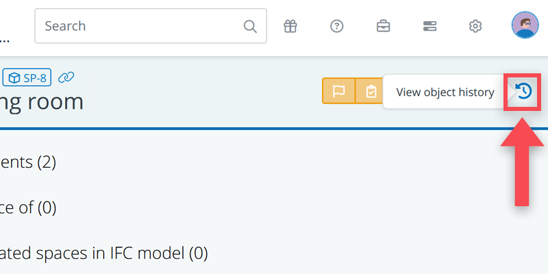 To view changes made to a specific object, you can click on the history icon on the object’s detail view.
