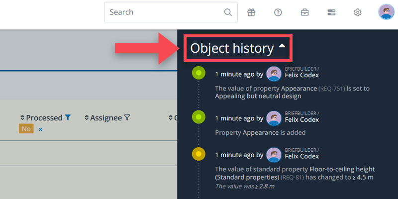 This article explains how to view history data in BriefBuilder: who made which change, when and what was changed?