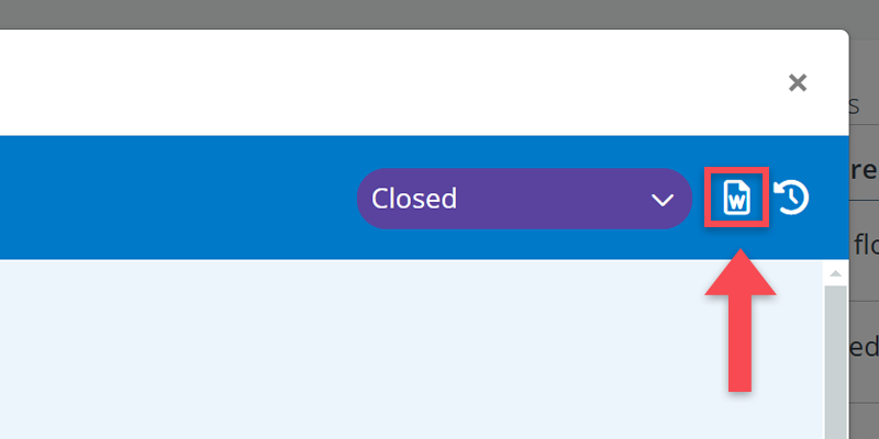 - In the table, find the Word icon next to the table’s header (see screenshot below).
