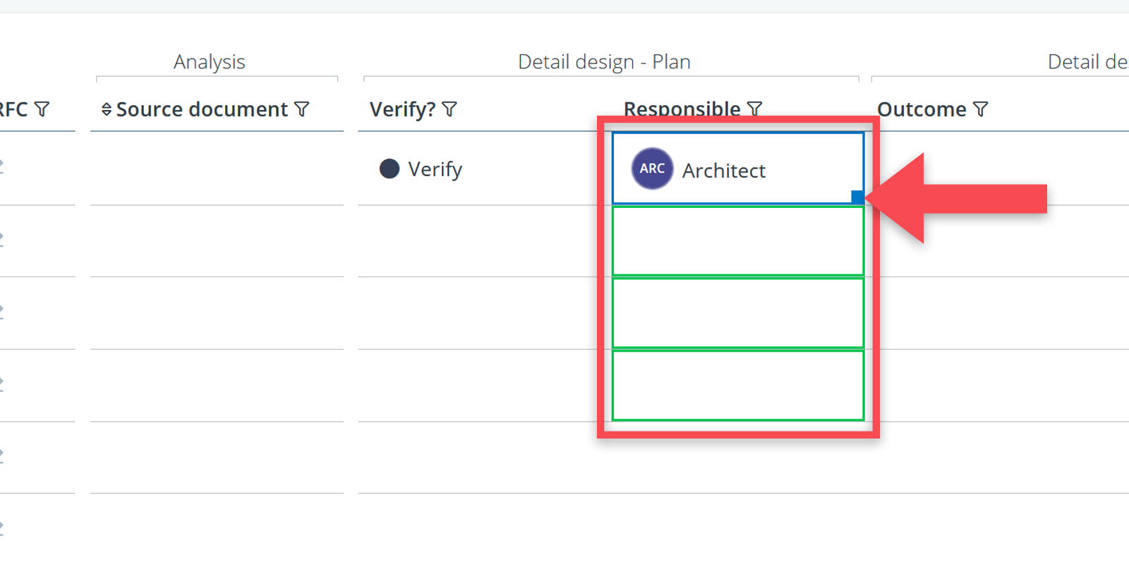 3. Enter the verification data in the Verification columns of the table (e.g. a method or outcome).