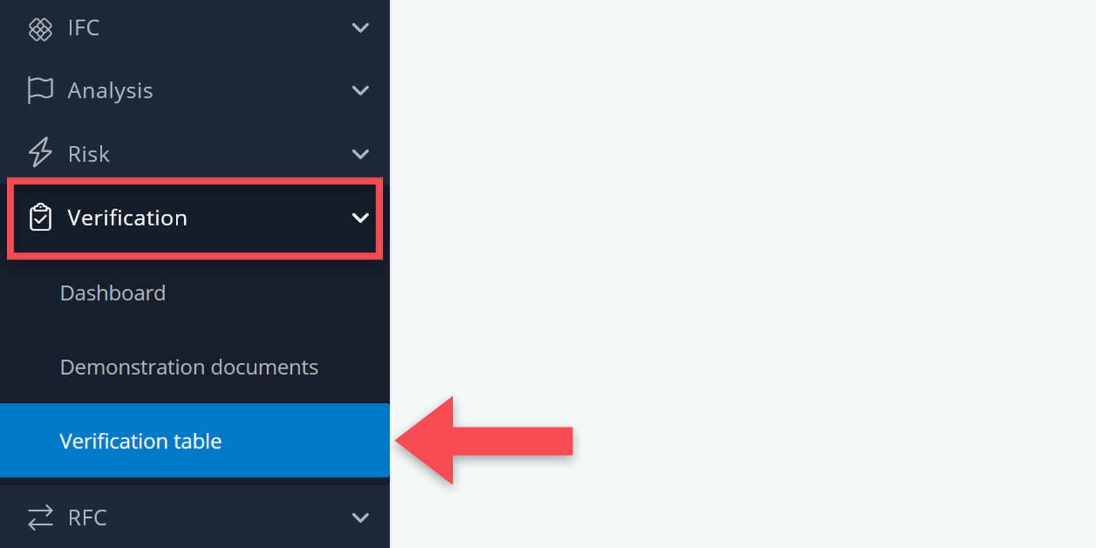 Clicking on any part of the charts will instantly take you to that particular set of requirements in the verification table. It’s an easy way to access certain verifications without needing to set up a filter or selection yourself.