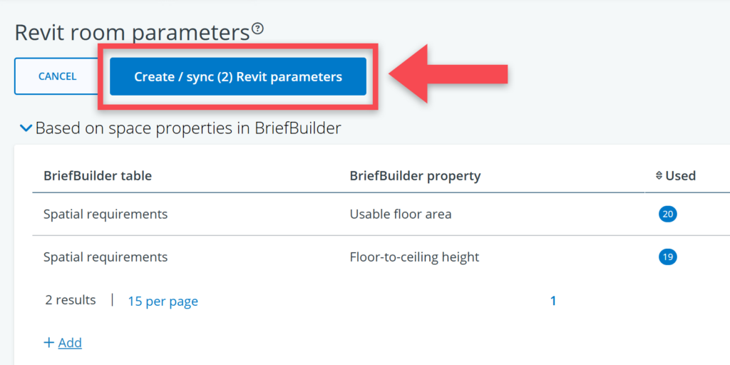 In this part of the Revit add-in, you can create and synchronise Revit room parameters based on data in BriefBuilder.