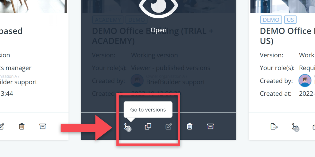 - Click on the versioning button on the project tile in the environment