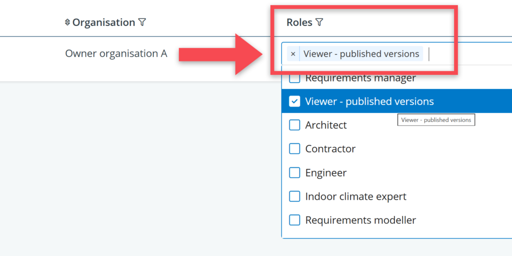 - Link the user to the project model with the project role: Viewer — published versions
