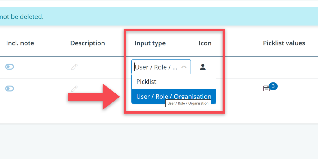 This input type is the default setting, but it is possible to change it (e.g. to picklist). Our recommendation, however, is not to do that because then you will no longer be able to assign verifications to specific users.