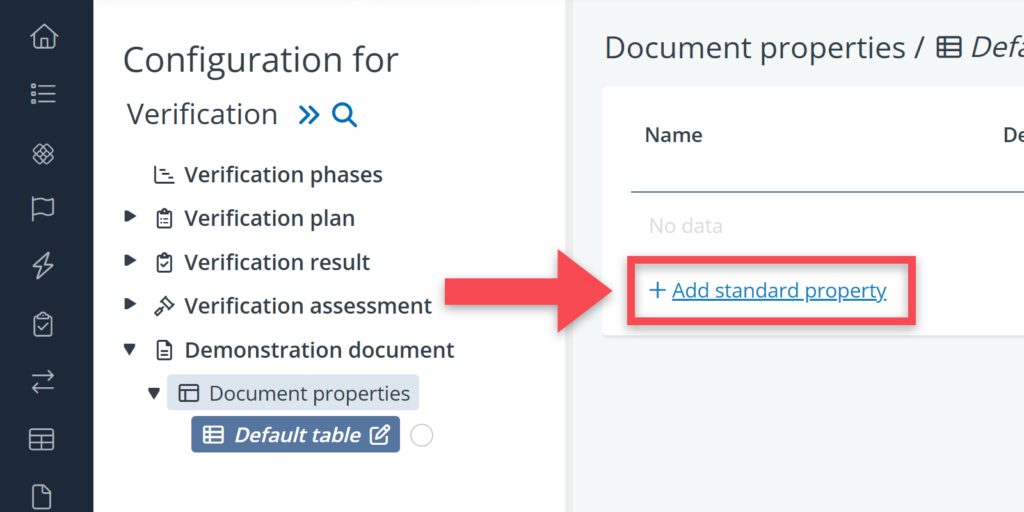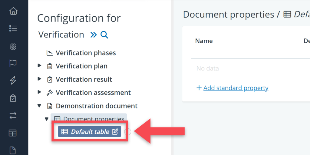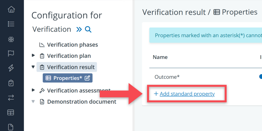 1) Click on Verification plan in the settings tree and click on the table called Properties.