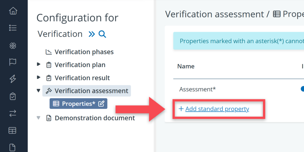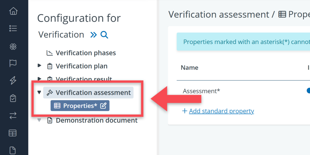 1) Click on Verification assessment in the settings tree and then on Properties.