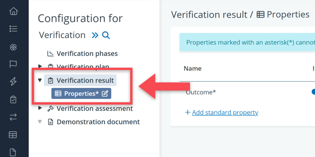 1) In this case, click on Verification result in the settings tree and then on Properties.