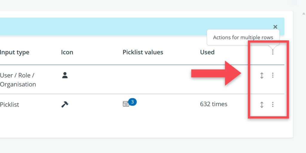 - Picklist values: the relevant value options (e.g. different kinds of methods). Only relevant when you have chosen picklist as input type earlier.