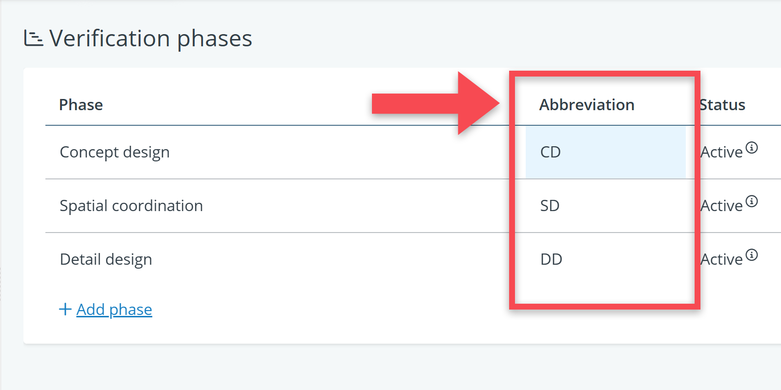 3) Give your phase a name and also take a look at the abbreviation (the abbreviation is being used in the verification columns on the detail views of objects).