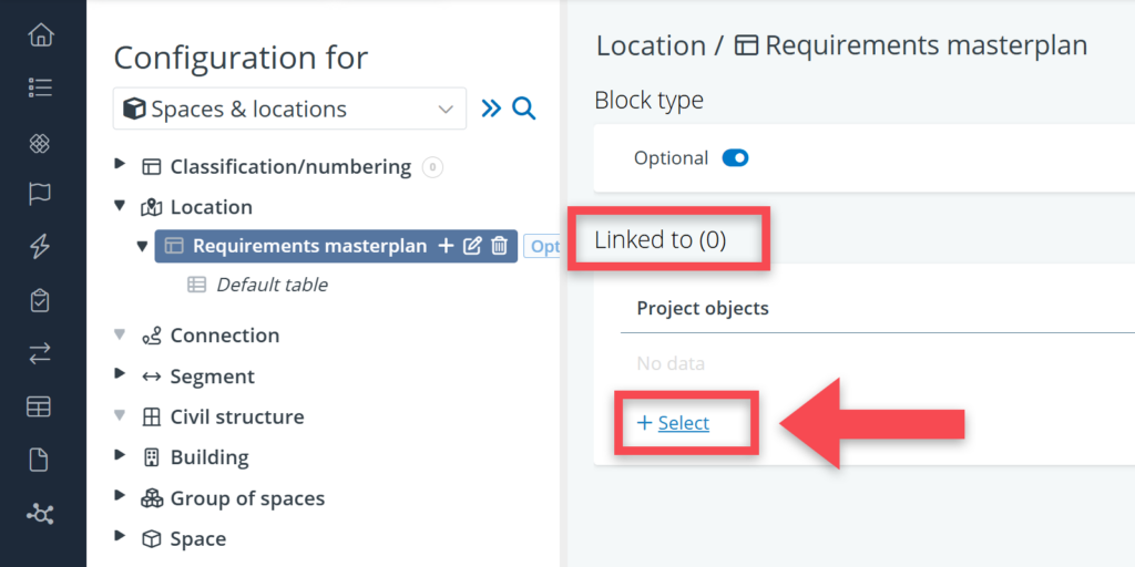 In the settings menu, where you have created your optional block, you can also directly link that block to the relevant objects.