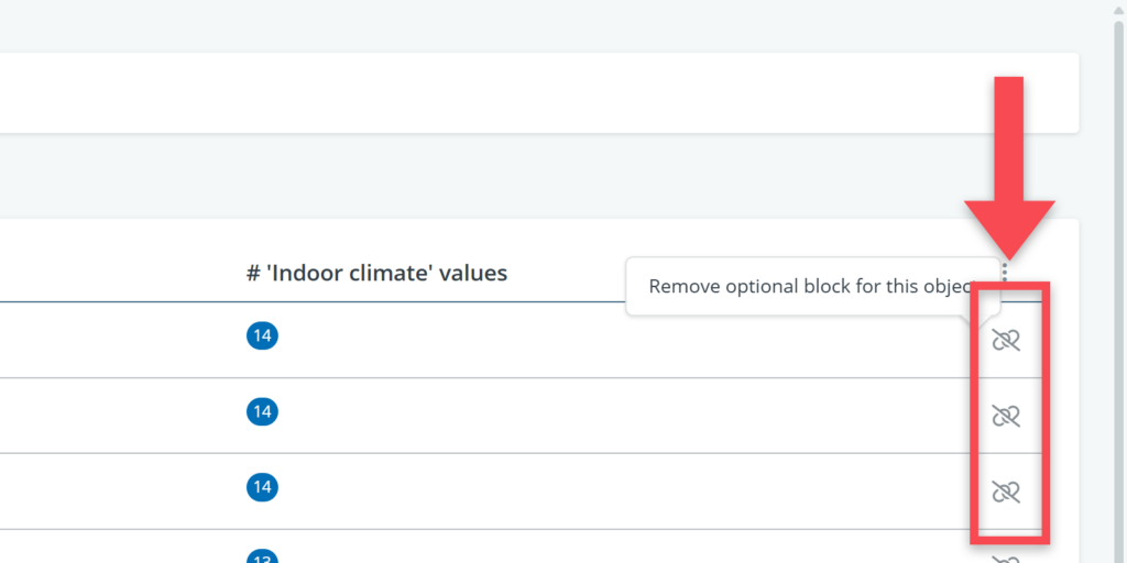 The removal of optional blocks can again be done via the settings or via the object’s detail view.